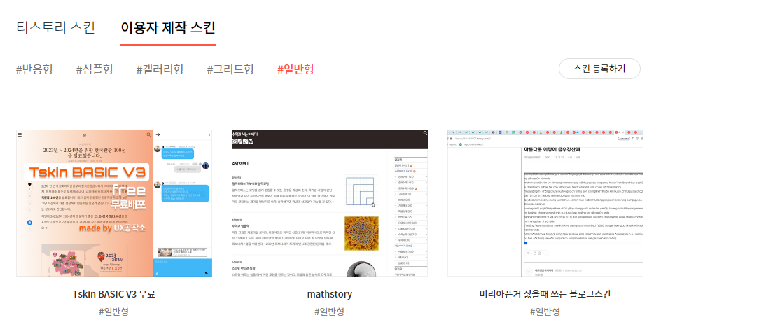 인터넷 유저들이 티스토리에 맞게 스킨을 직접 만드시는 것을 말합니다.