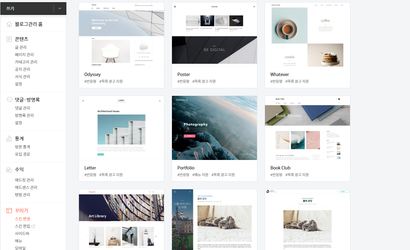 티스토리 상단에 스킨 탭이 있는데