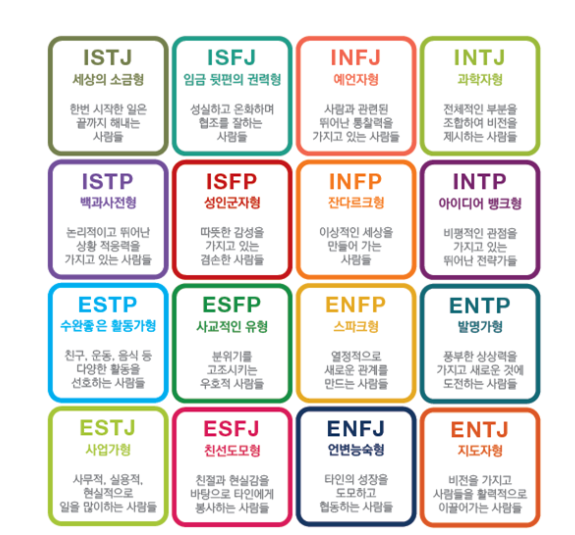 【잡다한 지식】MBTI 성격 테스트 및 유형 종류 16가지