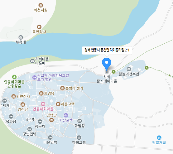 위치는 경북도청 옆 하회마을이나 방문하시기도 어렵지 않을거에요