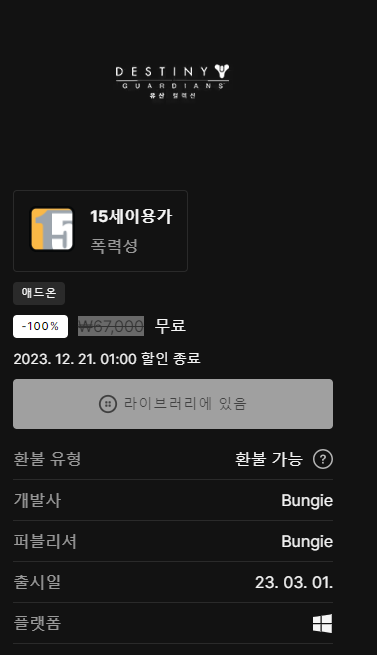 데스티니 가디언즈: 유산 컬렉션 (2023) 소개 합니다.